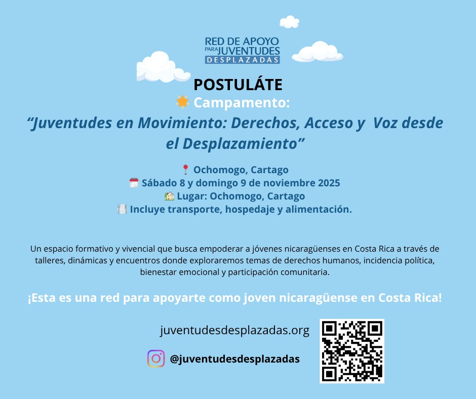 Te damos la bienvenida. Esta es una red para apoyarte como joven nicaragüense en Costa Rica. Aquí encontrarás una plataforma que te apoya y brinda información clara sobre tus derechos, servicios gratuitos y una comunidad que te acompaña